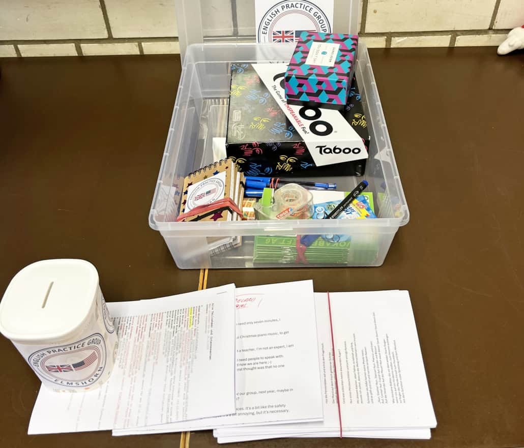 Büchertauschtisch: Wir haben eine große Bücherspende erhalten. Deshalb werden wir testweise auch bei unserem nächsten Treffen einen Büchertauschtisch aufbauen. Falls Ihr also zu Hause auch noch englischsprachige Bücher, Magazine (z.B. Spotlight) oder Lehrmaterialien habt, die Ihr gern verschenken möchtet, bringt diese gerne mit.